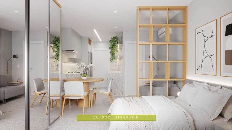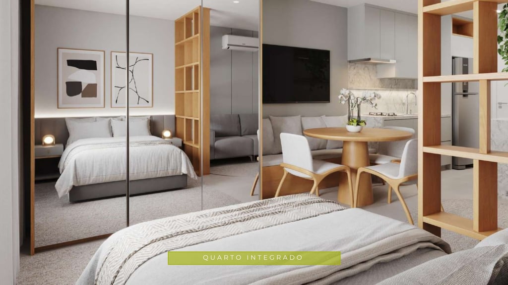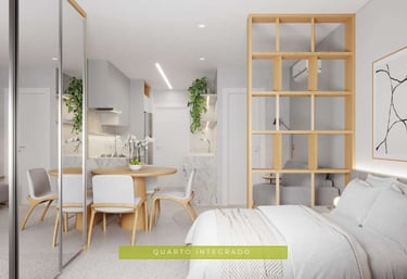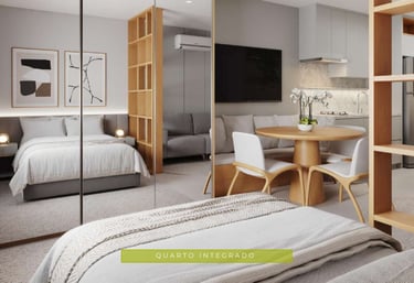 Ideal para quem busca praticidade e funcionalidade sem abrir mão do conforto. Os studios do Bosc Ecovillage oferecem um design inteligente com ambientes integrados e sacadas privativas, proporcionando uma experiência moderna e conectada ao verde ao redor.