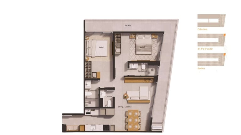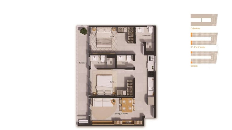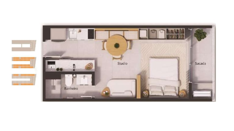 Perfeitos para quem deseja um espaço versátil e aconchegante. Com layout otimizado, essas unidades garantem conforto e sofisticação, ideais tanto para morar quanto para investir, com uma sacada para apreciar cada momento do dia.