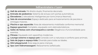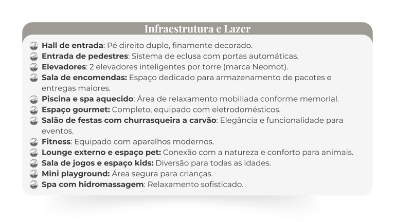 Este é um empreendimento que combina sofisticação, sustentabilidade e uma infraestrutura completa, oferecendo conforto e qualidade de vida em uma localização privilegiada.