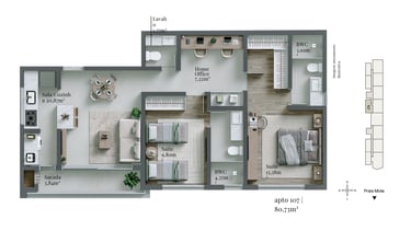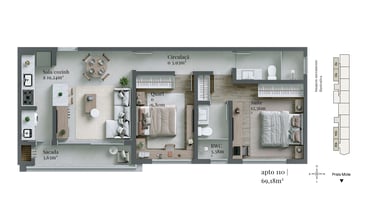 O Cozy II é ideal para quem procura um espaço inteligente e acolhedor. Com 69,18m² a 70,03m², ele conta com 2 quartos, sendo 1 suíte, além de sala de jantar, cozinha integrada e varanda. Perfeito para quem valoriza um design prático e elegante, sem abrir mão do conforto.