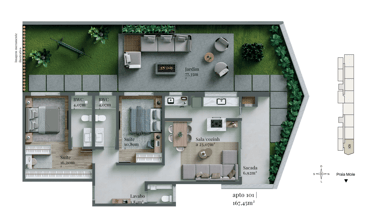 O Garden I oferece 167,45m² de espaço bem planejado, incluindo um jardim privativo que pode ser decorado com plantas e flores, criando um ambiente ainda mais acolhedor. Com 2 suítes, sala de jantar, cozinha, varanda e uma ampla sala, o apartamento permite a entrada de luz natural através de grandes janelas e portas de vidro. Uma verdadeira imersão na natureza e tranquilidade, dentro da sua casa.