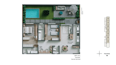 O estilo Garden é um conceito que traz o melhor da natureza diretamente para dentro de casa. Com um jardim privativo, o apartamento oferece um espaço exclusivo para relaxamento, onde você pode criar seu próprio refúgio. Com amplas janelas e portas de vidro, a conexão com o exterior e a iluminação natural são privilegiadas, proporcionando um ambiente acolhedor e tranquilo. Perfeito para quem deseja mais privacidade, contato com a natureza e momentos de paz sem sair de casa.