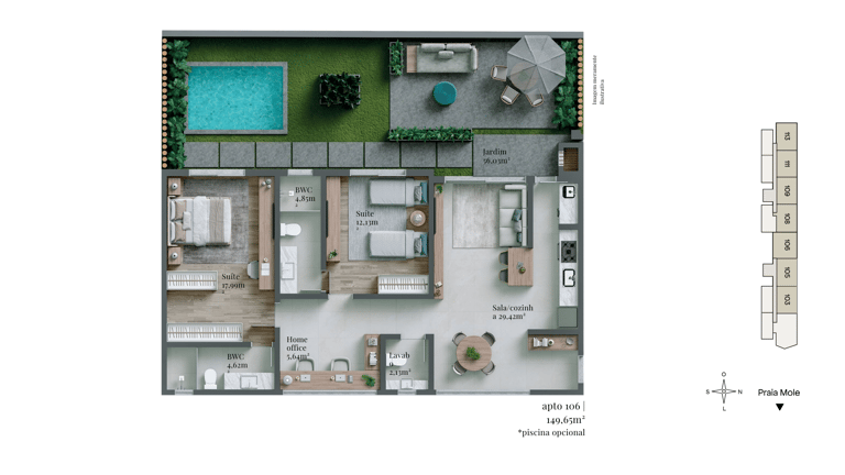 Com apartamentos de 2 dormitórios e até 167m², você tem a opção de escolher entre modelos Cozy, Garden ou Duplex, adaptando-se perfeitamente ao seu estilo de vida.