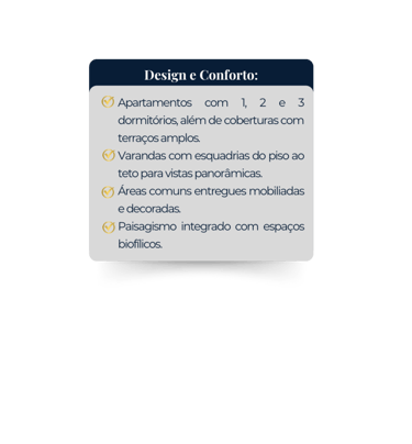 Seus apartamentos variam entre 1, 2 e 3 dormitórios, além de opções de coberturas com terraços amplos, todos desenhados para proporcionar máximo conforto e vistas deslumbrantes do oceano.